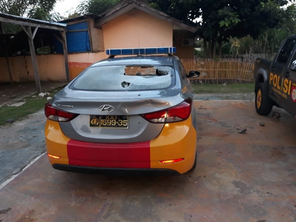 Sementara dua mobil patroli polisi rusak dilempar batu. Tidak hanya itu, satu mobil Kapolsek Sape dirusak dan sebuah motor polisi dibakar.