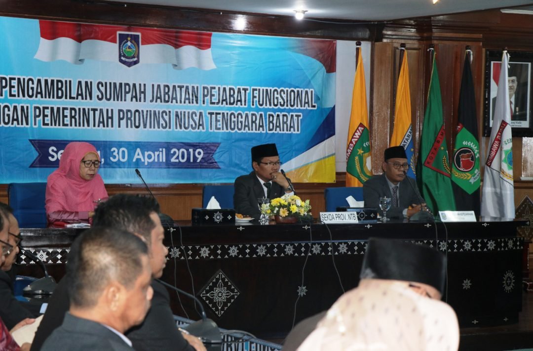 HarianNusa.Com – Sekda Provinsi Nusa Tenggara Barat Ir. H. Rosiady Sayuti, M.Sc., P.hd melantik dan mengambil sumpah jabatan fungsional di lingkungan Pemerintah Provinsi NTB bertempat di Ruang Rapat Utama Kantor Gubernur NTB, Selasa (30/4/19).