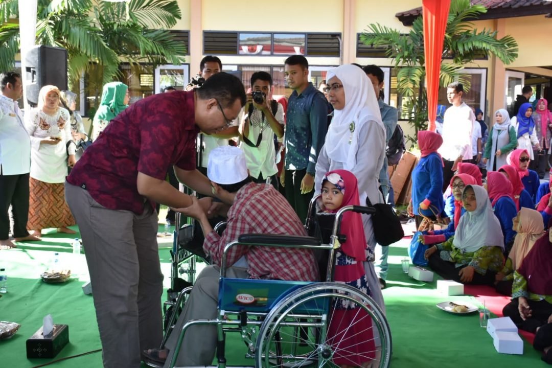 Kegiatan ditutup dengan penyerahan bantuan kursi roda oleh Gubernur dan jajaran kepada Pengurus Balai dan bingkisan kepada para warga Balai. (f3)