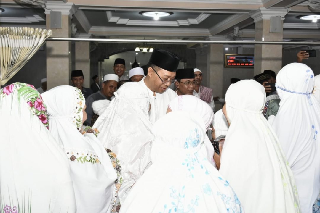 Gubernur yang didampingi oleh Isteri Hj. Niken Saptarini Widyawati Zulkieflimansyah, S.E., M.Sc beserta Kepala OPD Lingkup Provinsi, Walikota Mataram, Wakil Walikota Mataram, Pimpinan DPRD, Pimpinan DPR Provinsi, DANREM, dan Kapolda melaksanakan sholat Isya dan Tarawih bersama masyarakat.