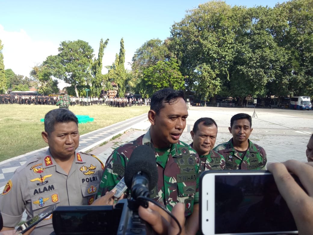 didampingi Kasrem 162/WB Letnan Kolonel Inf Endarwan Yansori dan Kapolres Mataram AKBP Saiful Alam saat wawancara dengan sejumlah awak media usai gelaran Apel. (istimewa)