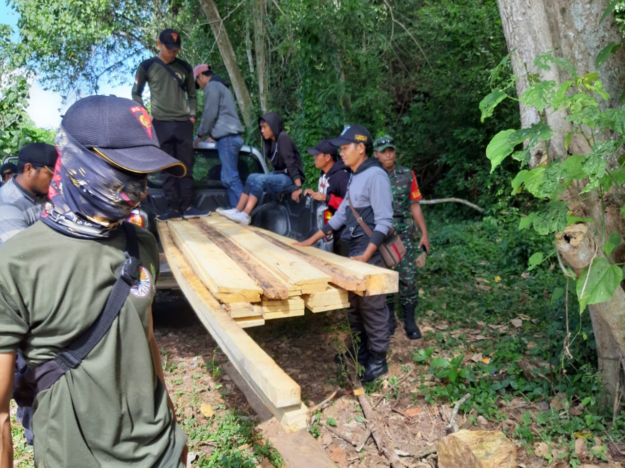 Tim Gabungan Amankan Terduga Ilegal Logging Bersama BB