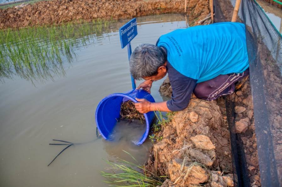 “Kami bersama-sama dengan BB Padi merekayasa lahan dengan teknologi perikanan tepat guna, yakni minapadi ikan nila dan udang galah dengan sistem tanam padi jajar legowo 2:1 dan 4:1. Hal ini dimaksudkan untuk mengkaji nilai usaha tani sekaligus optimalisasi potensi lahan sawah irigasi” ungkap Carlos Sirait disela acara tabur ikan. Carlos juga sangat mengapresiasi BB Padi dalam menyediakan lahan, tim peneliti serta varietas padi yang tepat dalam program ini.
