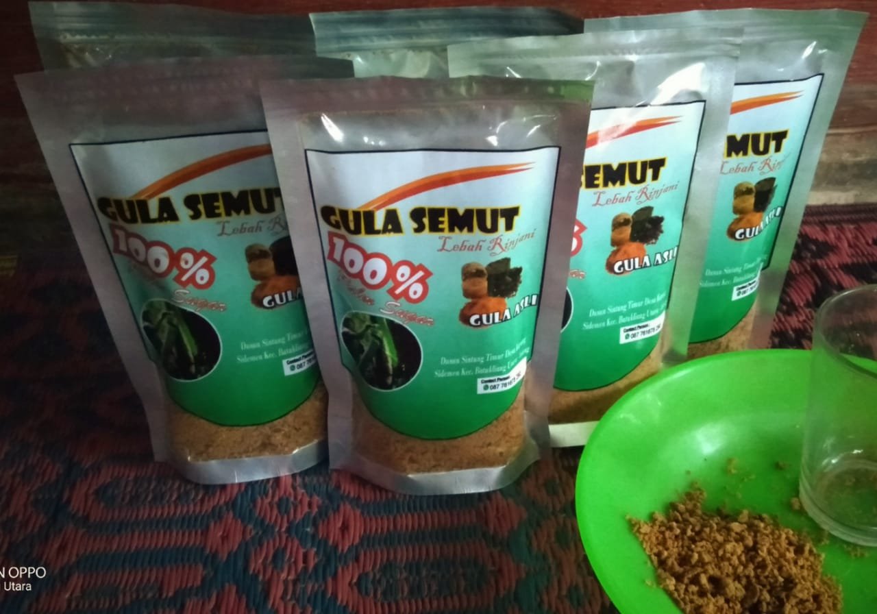 “Untuk proses pengemasan, kami menggunakan plastik packaging label gula semut dengan menggunakan mesin packing. Pengemasan modern ini untuk menjaga kualitas gula semut ketika sampai ke konsumen,” jelas Tafaul.