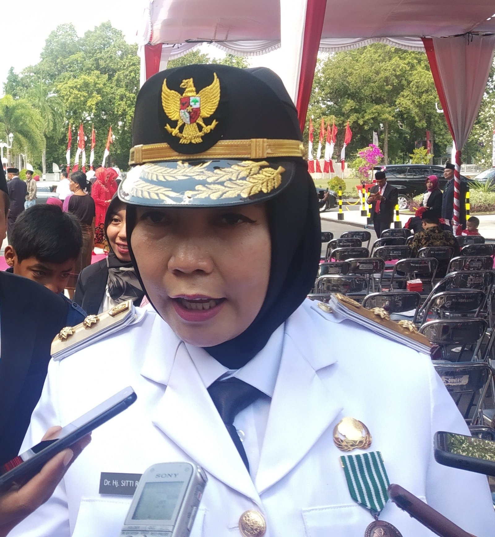 2. Wakil Gubernur NTB, Dr. Hj. Sitti Rohmi Djalillah, usai Upacara peringatan HUT Kemerdekaan RI ke 74 di lapangan Bumi Gora Kantor Gubernur NTB. (HarianNus.Com/f3)