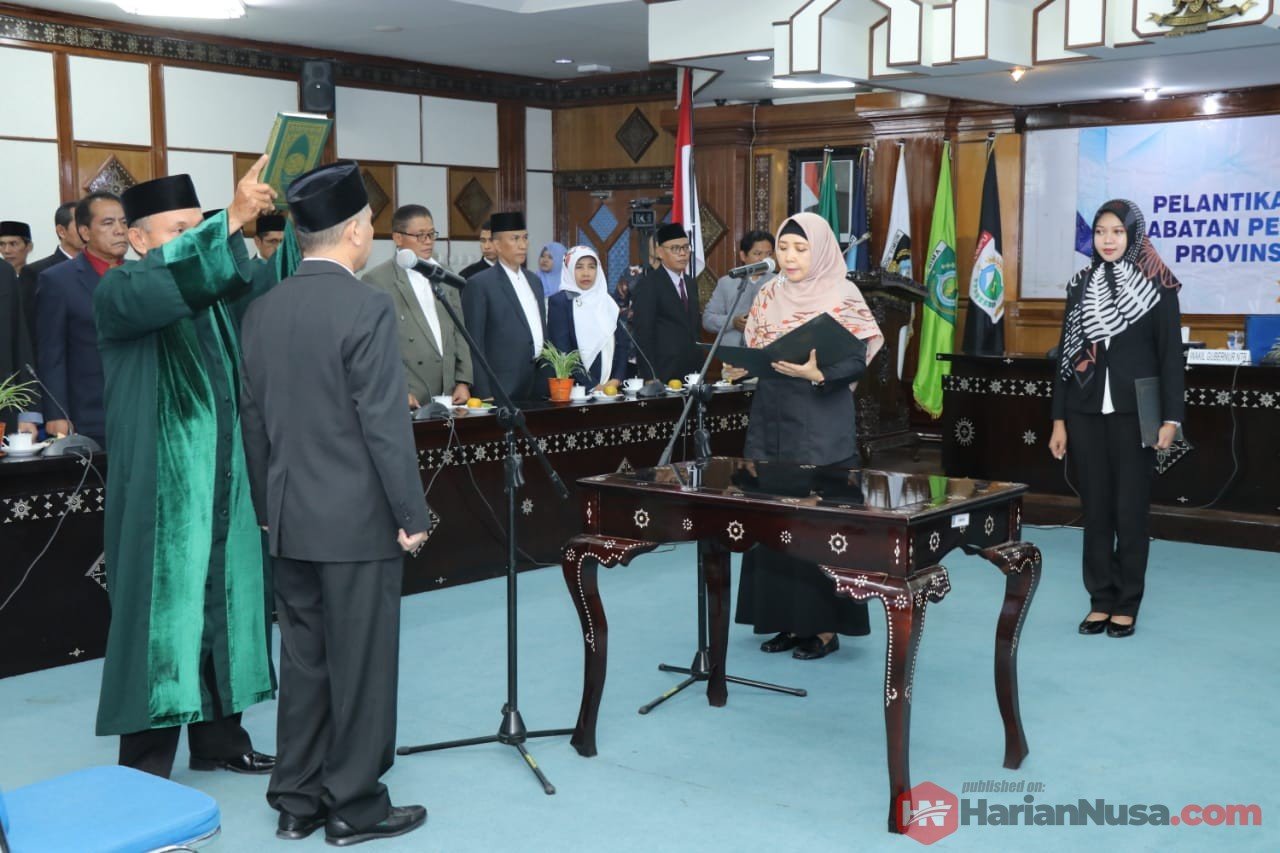 Wakil Gubernur NTB, Dr. Hj. Sitti Rohmi Djalillah saat melantik kembali Dr. Ir. H. Iswandi sebagai Pejabat Sekda NTB. (istimewa)