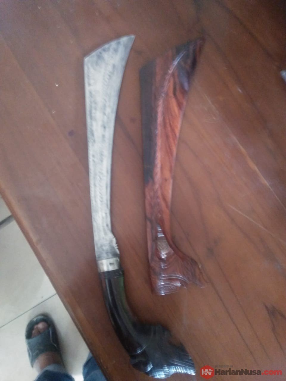Dari hasil penggeledahan itu ditemukan 1 (satu) pucuk senjata api (senpi) rakitan laras pendek yang di selipkan di dalam celana samping kiri RM alias WW, dan 1 (satu) bilah parang panjang yang diselipkan di dalam celana bagian depan saudara MR.
