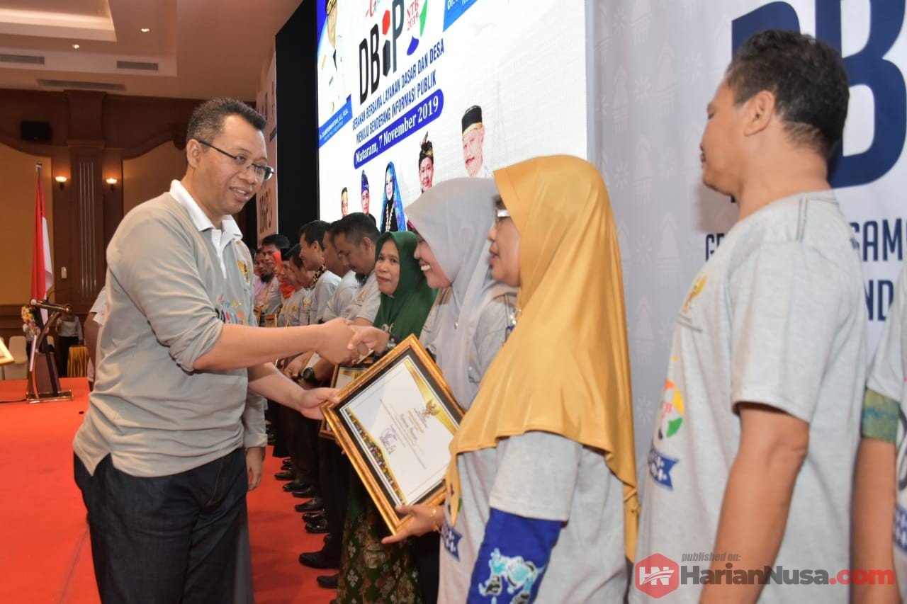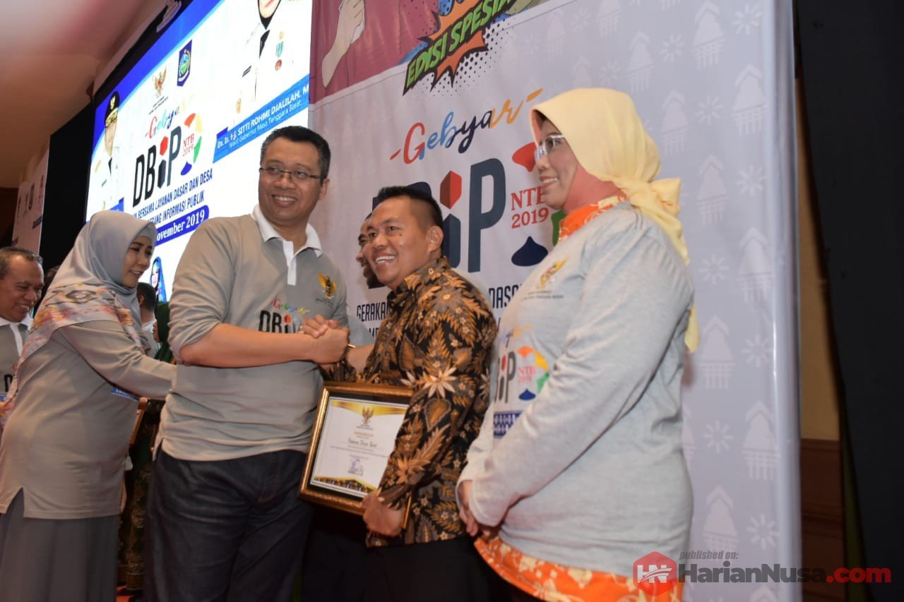 Acara juga dirangkai dengan penyerahan penghargaan Desa Benderang informasi Publik dari Komisi Informasi (KI) Provinsi NTB yang diserahkan oleh Gubernur dan Wakil Gubernur kepada para penerima.