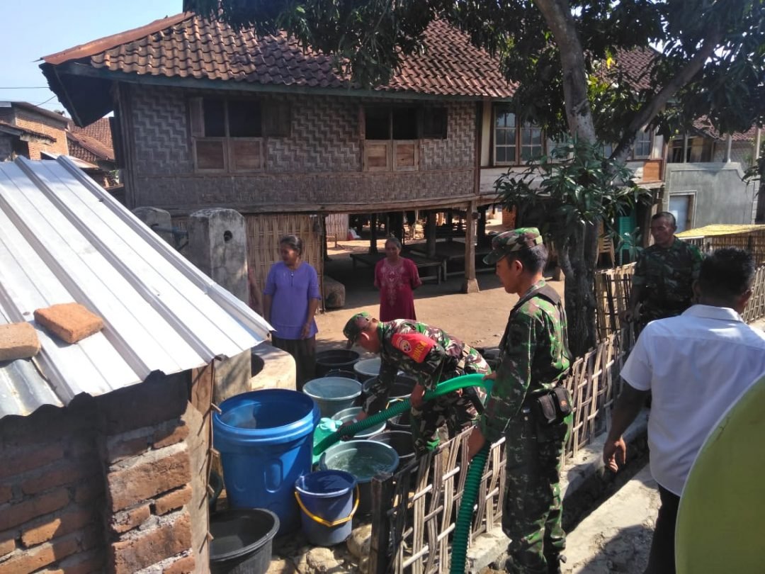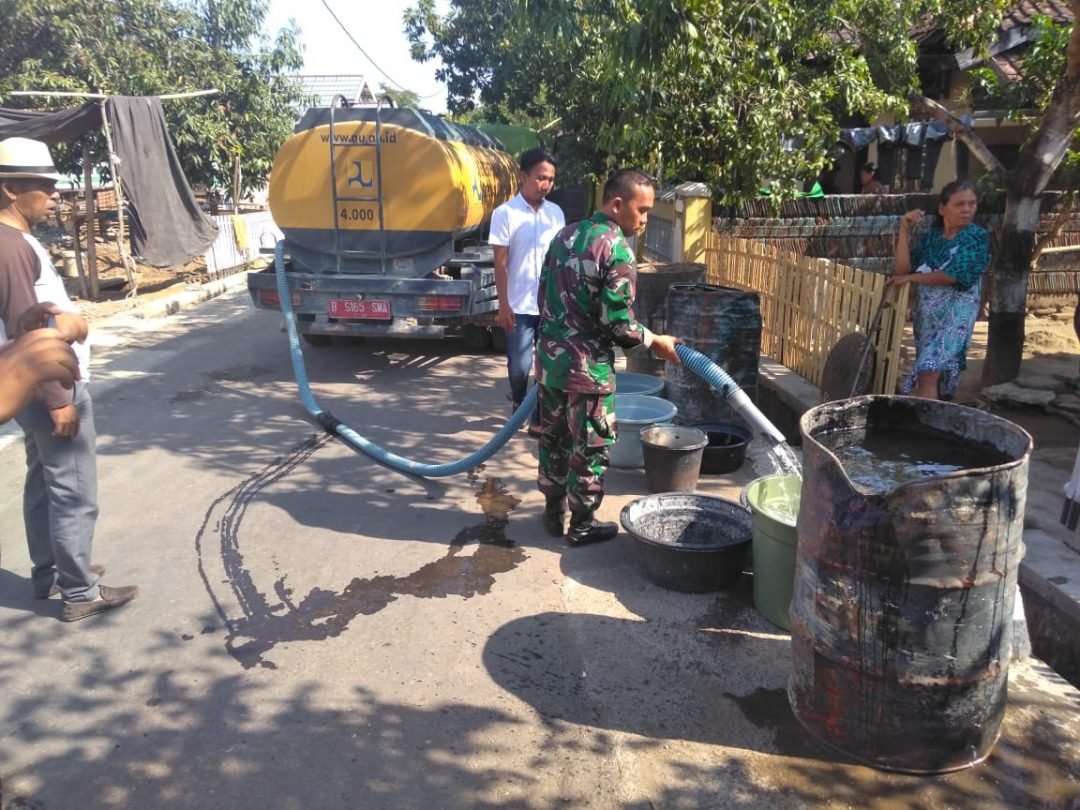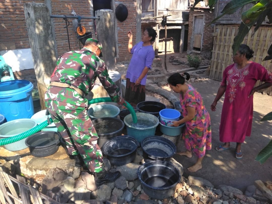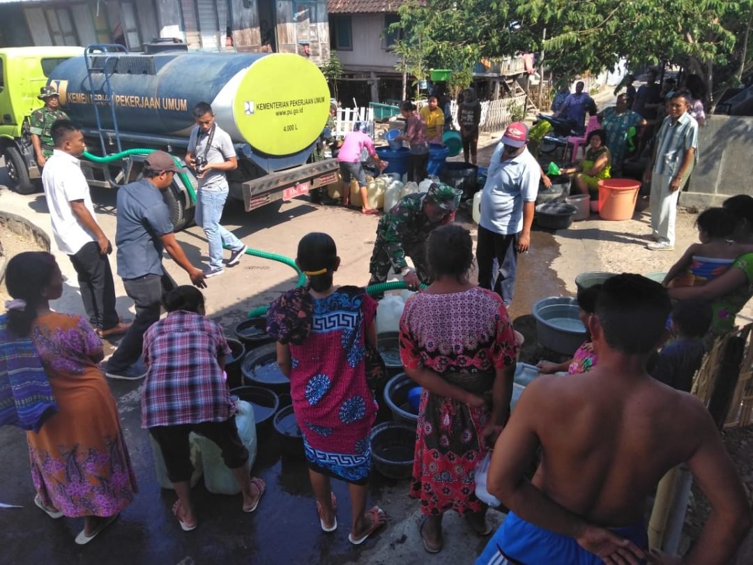 Anggota TNI-AD tampak membantu pendistribusian air bersih kepada masyarakat di Sumbawa. (istimewa)