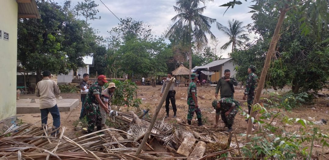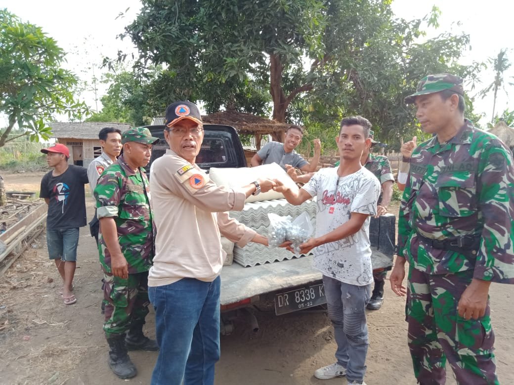 Puting Beliung Terjang Sambelia, Kodim dan Instansi Terkait Lotim Berikan Bantuan