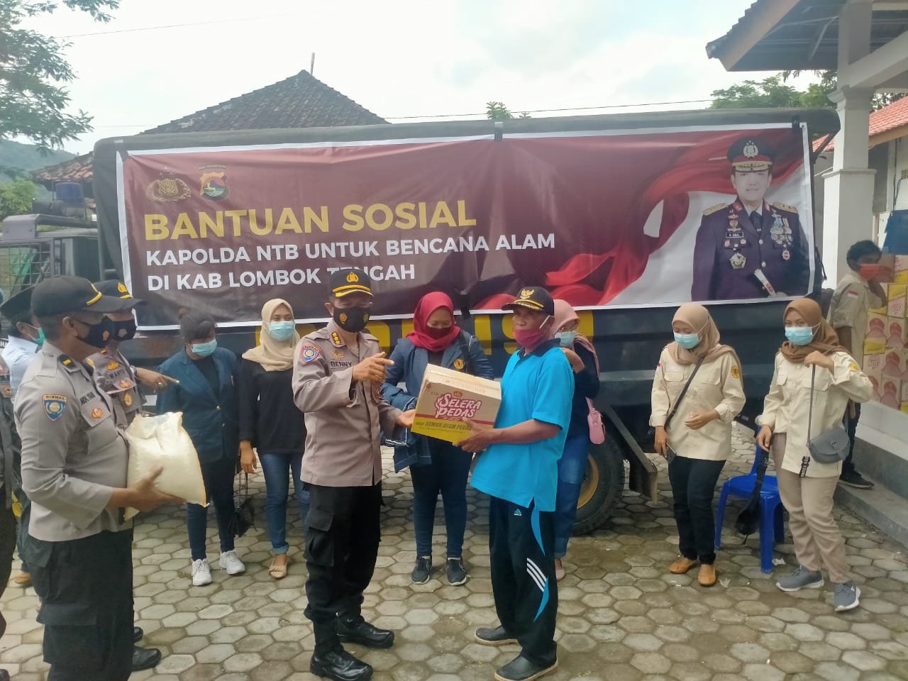 Bantuan sosial yang diberikan Polda NTB diserahkan oleh Dir Binmas Polda NTB Kombes Pol Benny Basir Warmansyah, untuk korban banjir di Desa Kuta dan Desa Mertak Kecamatan Pujut yang diterima langsung oleh masing-masing Kepala Desa setempat. Jumat (05/2/21).