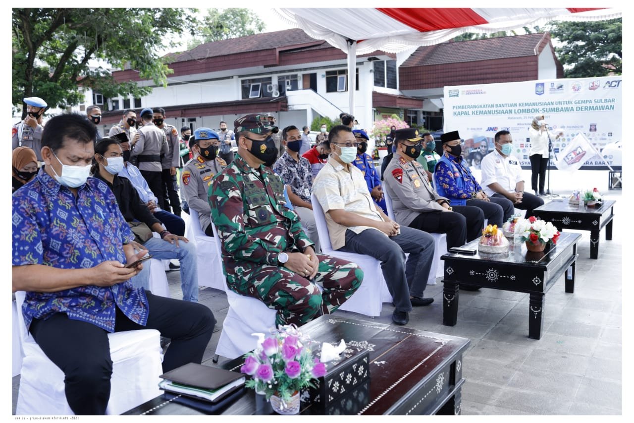 Gubernur NTB, Dr. H. Zulkieflimansyah, M.Sc bersama Kapolda NTB, Irjen. Pol. Mohammad Iqbal, MH, Danrem 162/WB Brigjen. TNI Rizal Ramdhani, SH, MH dan Kepala OPD terkait lingkup Pemprov NTB, pada Kamis (25/2/2021) melakukan Pelepasan Bantuan Kapal Kemanusiaan Lombok Sumbawa Dermawan.
