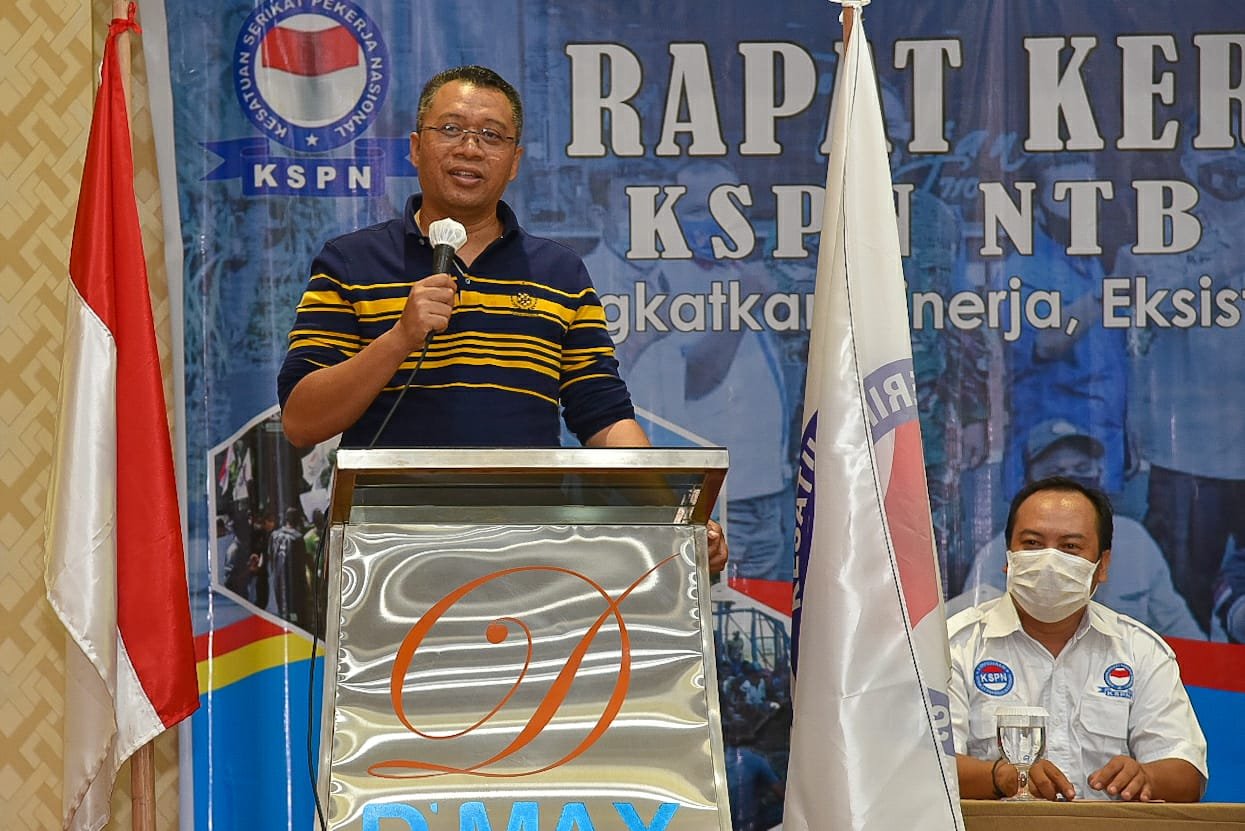 HarianNusa.com, Lombok Tengah – Gubernur NTB, Dr. Zulkieflimansyah membuka Rapat Kerja Wilayah (RAKERWIL) Fedrasi Kesatuan Serikat Pekerja Nasional (FKSPN) Provinsi NTB di Hotel D’Max Lombok Tengah, Kamis (01/04/21).