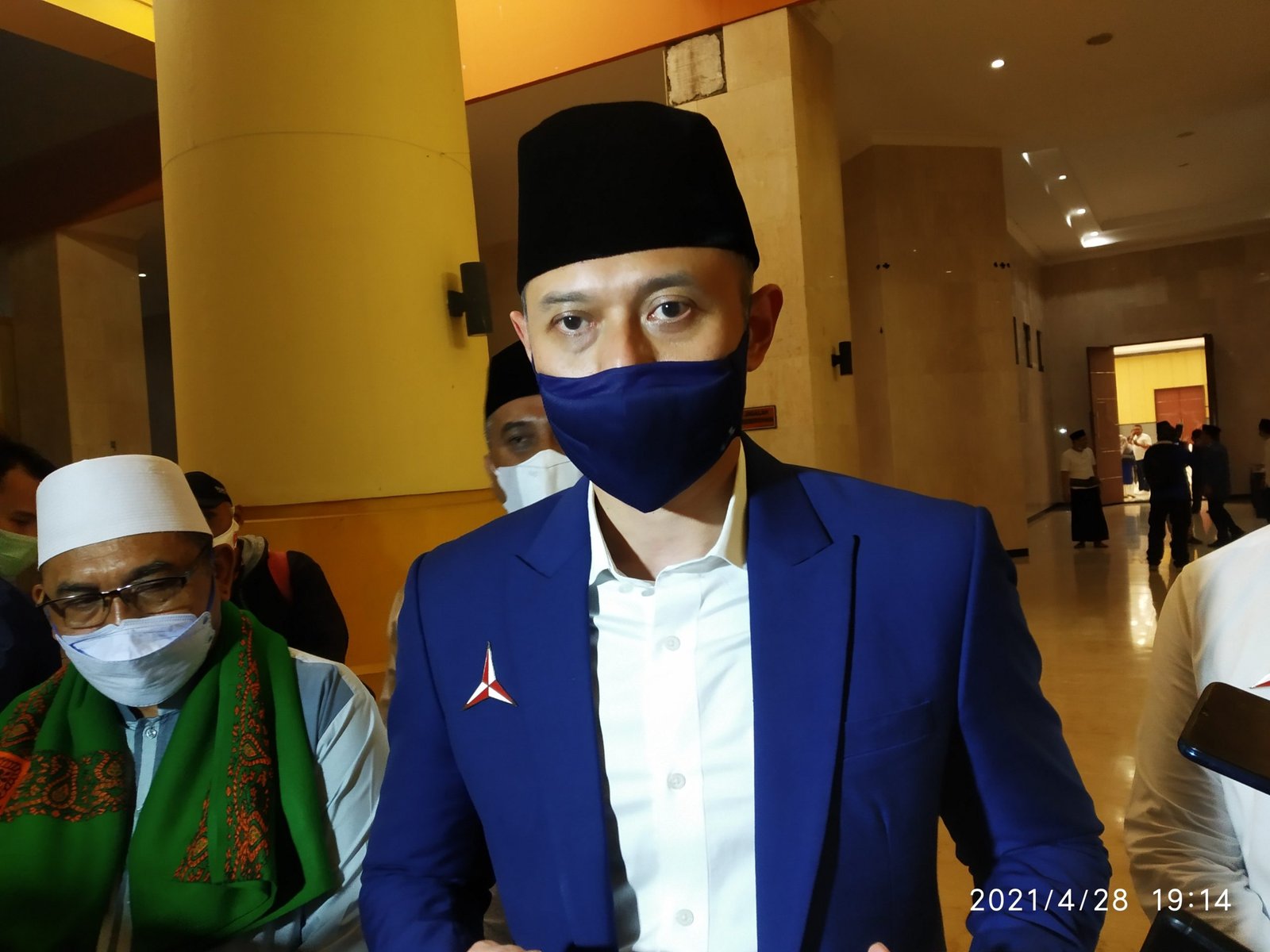 1.Ketua Umum Partai Demokrat H. Agus Harimurti Yudhoyono (AHY) didampingi Ketua DPW Partai Demokrat NTB TGH Mahali Fikri saat diwawancara wartawan usai acara silaturahmi dengan Ulama se NTB di Islamic Center Mataram (HarianNusa.com)
