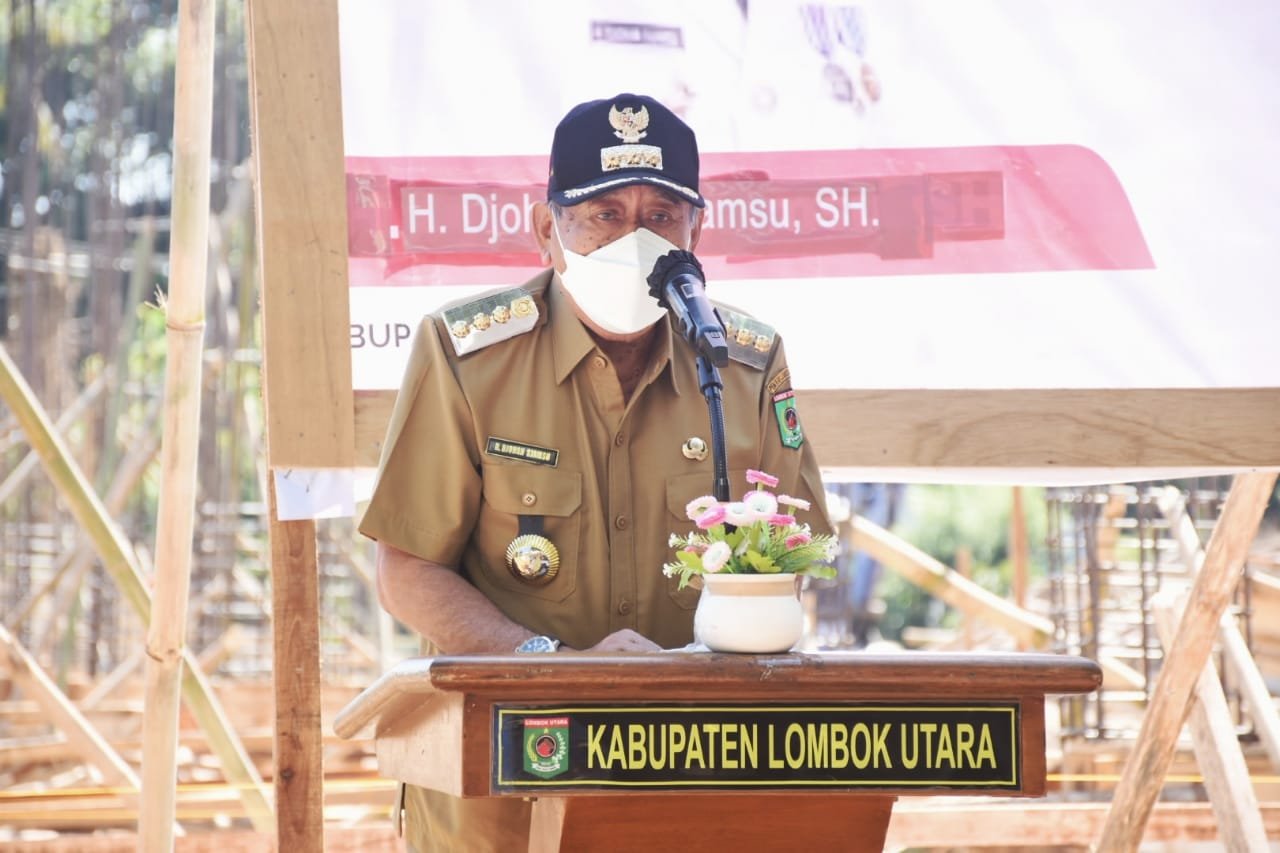 HarianNusa, KLU – Bupati Lombok Utara, H. Djohan Sjamsu, SH melangsungkan Peletakan Batu Pertama Pembangunan Gedung Layanan Perpustakaan di Desa Gondang Kecamatan Gangga (7/6/2021). Hadir Pula Wakil Bupati Danny Karter Febrianto R ST MEng, Para Asisten dan Staf Ahli, Kepala OPD, Plt Camat Gangga, serta undangan lainnya.
