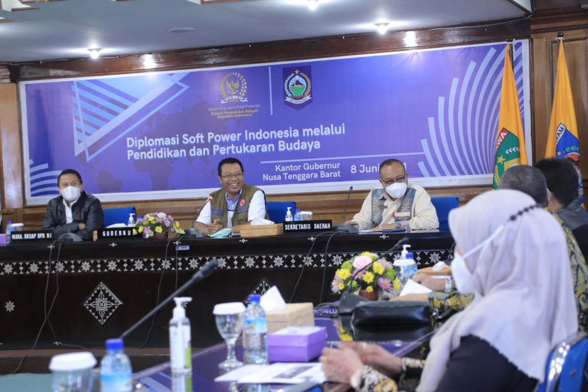 "Kami datang ke NTB ingin mendengar dan melihat problem-problem yang dihadapi dunia pendidikan dan kebudayaan. Kemudian kami akan menjembatani melalui diplomasi sehingga peran pendidikan dan kebudayaan bisa ikut memberi kontribusi di dunia global," ungkapnya saat rapat bersama Gubernur NTB, Dr. H. Zulkieflimansyah, para rektor se-NTB tentang Diplomasi Soft Power Indonesia melalui pendidikan dan pertukaran budaya di Ruang Rapat Utama kantor gubernur NTB, Selasa (08/06).