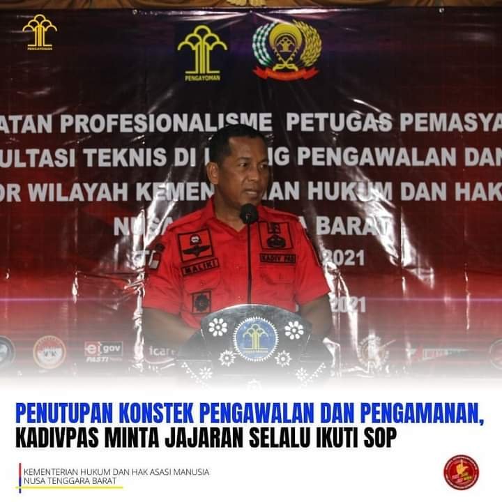 HarianNusa, Lombok Barat – Kegiatan Peningkatan Profesionalisme Petugas Pemasyarakatan Melalui Konsultasi Teknis di Bidang Pengawalan dan Pengamanan Kantor Wilayah Kementerian Hukum dan HAM Nusa Tenggara Barat ditutup secara resmi oleh Kepala Divisi Pemasyarakatan Kantor Wilayah Kemenkumham NTB, Maliki, Jumat, (18/6/2021).
