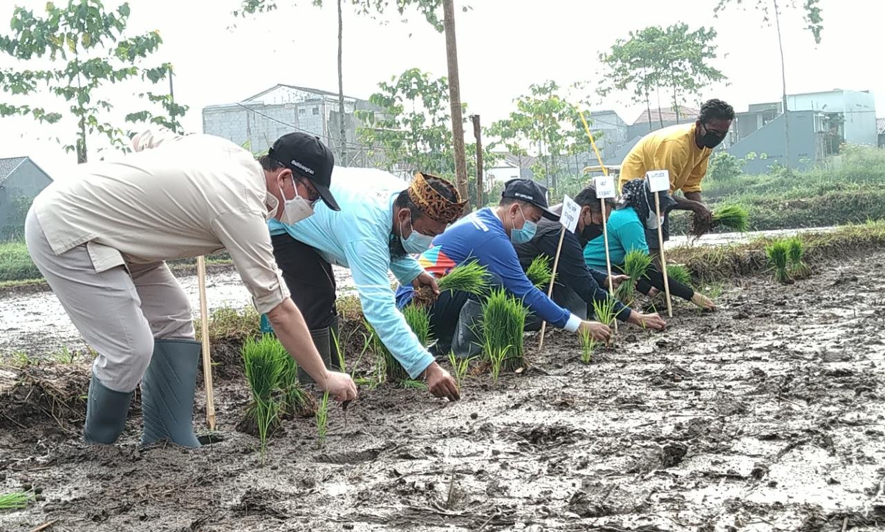 HarianNusa, Bogor – Tanam perdana demplot varietas unggul baru padi khusus spesifik di areal seluas 2 hektare (ha) di Kelurahan Situgede, bagian dari demplot seluas10 ha di Kota Bogor dihadiri Kepala Balai Besar Penelitian Tanaman Padi (BB Padi) Dr. Yudi Sastro, Anggota Komisi IV DPR RI Dr. Ir. Hj. Endang Setyawati Thohari, DESS., M.Sc., Kepala Dinas Ketahanan Pangan dan Pertanian, peneliti, dan beberapa jajaran dari Pemerintah Daerah Kota Bogor, Minggu (20/6/2021).