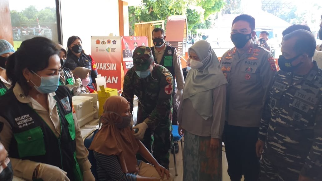 Kapolda NTB Irjen Pol. Mohammad Iqbal, S.I.K., M.Si., di sela pelaksanaan vaksinasi di Tribun Lumbung Lapangan Bhara Daksa Polda NTB mengatakan, vaksinasi dilaksanakan secara serentak di seluruh Indonesia termasuk di Nusa Tenggara Barat (NTB), dalam rangka menyambut peringatan Hari Bhayangkara ke-75.