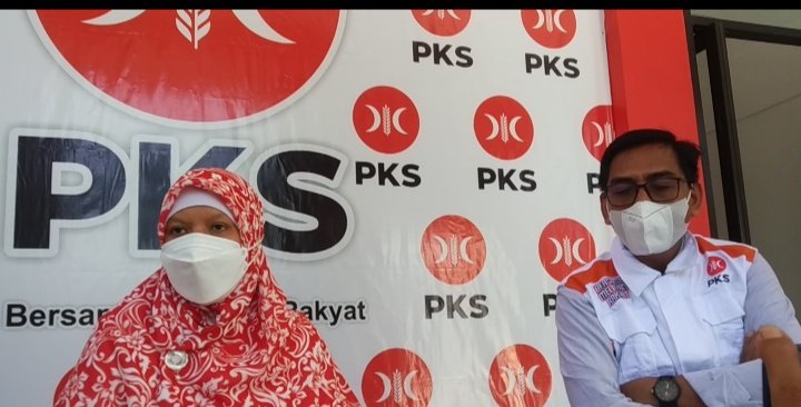 3. Ketua DPD PKS Lombok Barat, Hj. Nurul Adha dan Ketua BP3 PKS NTB, H. Sambirang Ahmadi saat diwawancara di Kantor DPW PKS NTB. (HarianNusa)
