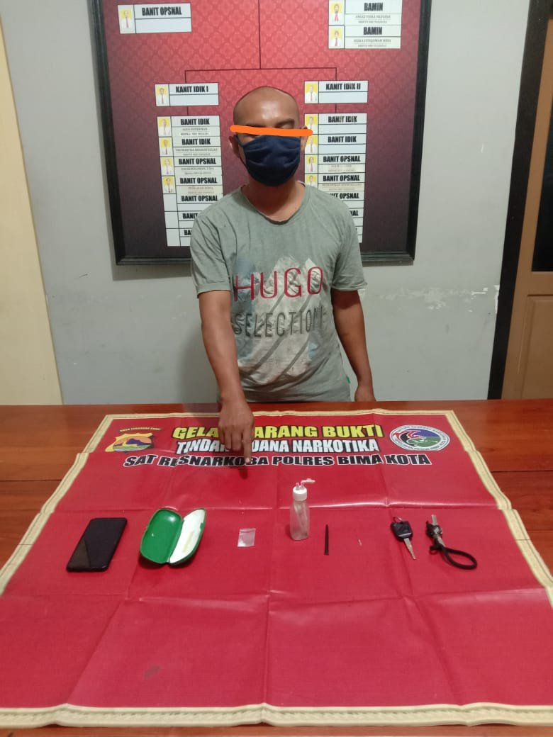 Kapolres Bima Kota melalui Kasat Narkoba Iptu Thamrin menjelaskan, pria berkepala plontos itu kedapatan Tim Opsnal Narkoba menyimpan Sabu-Sabu di dalam jok sepeda motornya.