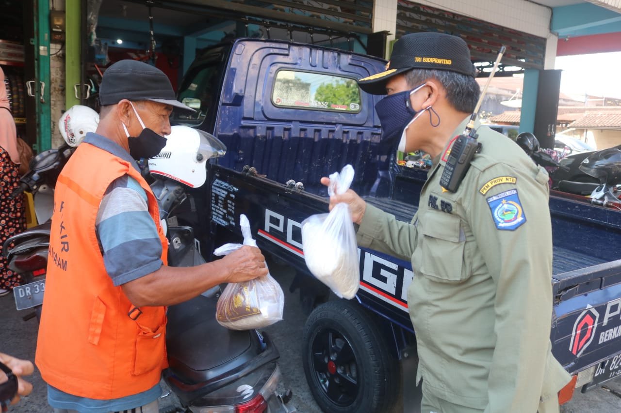 Dinas Perhubungan Pemprov NTB menyerahkan sebanyak 200 paket sembako di Pasar Kebon Roek, Kecamatan Ampenan dan Asisten II Setdaprov NTB bersama OPD lainnya juga menyerahkan sebanyak 500 paket sembako di Kecamatan Sekarbela dan Pasar Mandalika, Kecamatan Sandubaya.