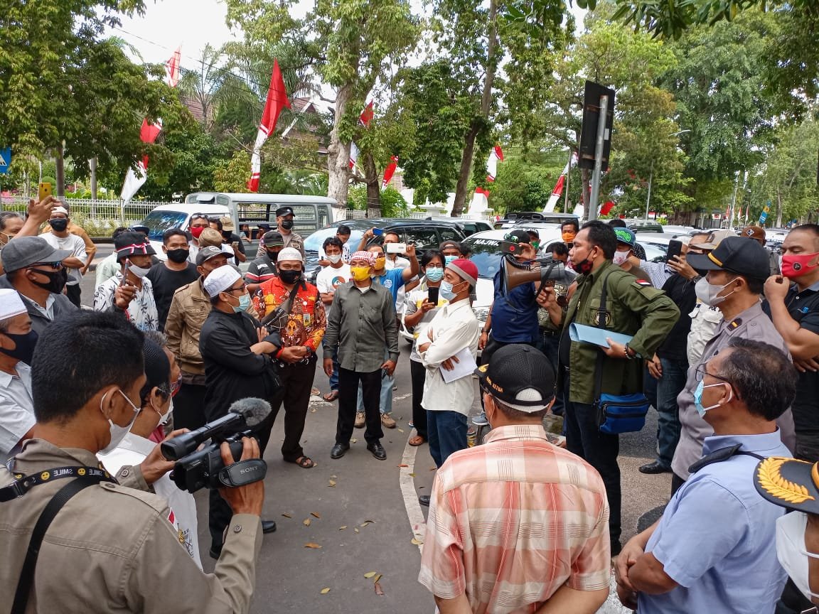 Sejumlah pengusaha dan pelaku transportasi di NTB menyampaikan keluahnannya ke Kantor gubernur NTB. (Istimewa)