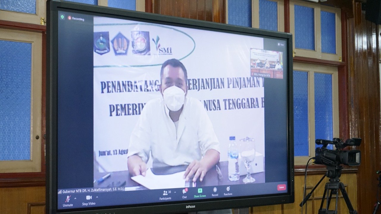 HarianNusa, Mataram – Gubernur NTB, Dr. H. Zulkieflimansyah bersama Gubernur NTT, Viktor Bungtilu Laiskodat menandatangani perjanjian pinjaman dana Pemulihan Ekonomi Nasional (PEN) kepada PT Sarana Multi Infrastruktur atau PT SMI secara virtual, Jumat (08/09).