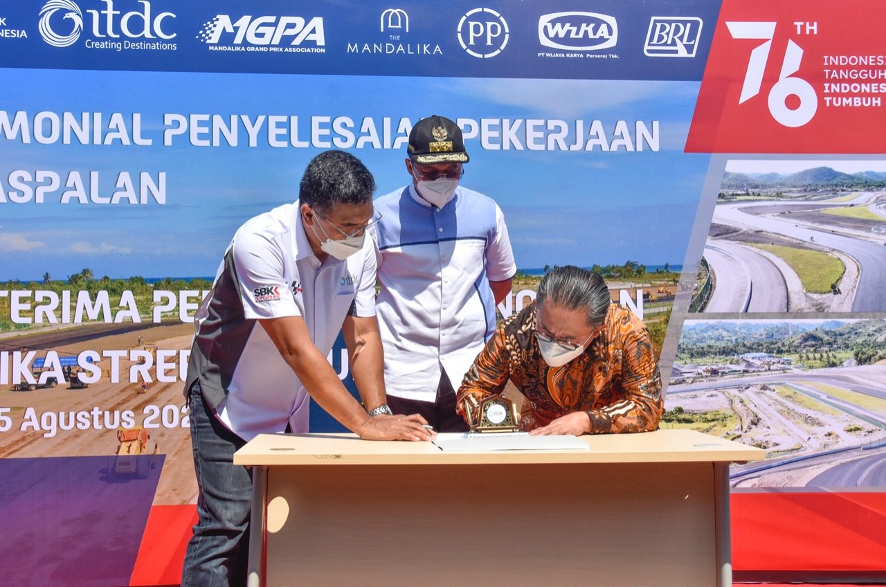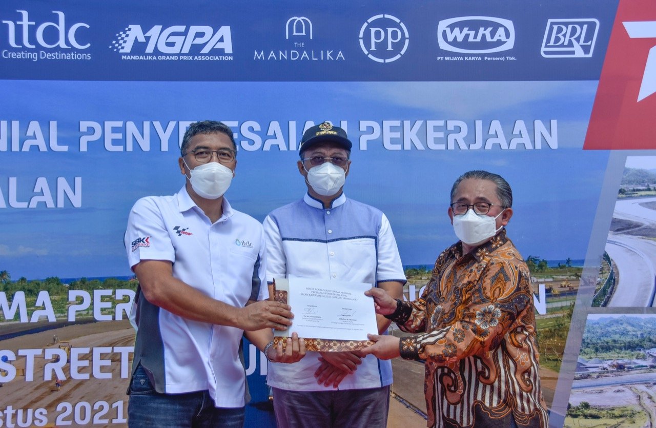 Pada kesempatan ini juga dilaksanakan serah terima pertama pekerjaan pembangunan Mandalika International Street Circuit dari Kontraktor kepada ITDC. Pengerjaan Mandalika International Street Circuit sendiri dikerjakan oleh PT PP (Persero) Tbk untuk pekerjaan pengaspalan dan sebelumnya KSO WIKA – BRL untuk ground work.