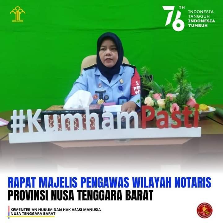 HarianNusa, Mataram – Kepala Divisi Pelayanan Hukum dan HAM, Harniati memimpin Rapat Majelis Pengawas Wilayah Notaris Provinsi Nusa Tenggara Barat, yang dihadiri oleh anggota MPW NTB, antara lain Edi Hermansyah, H. Aroman, Djumardin, Kaharuddin, serta Ketua MPDN Kota Mataram Agus Suarjaya, di Ruang Legal Drafter Kemenkumham NTB, Rabu (18/8/2021).