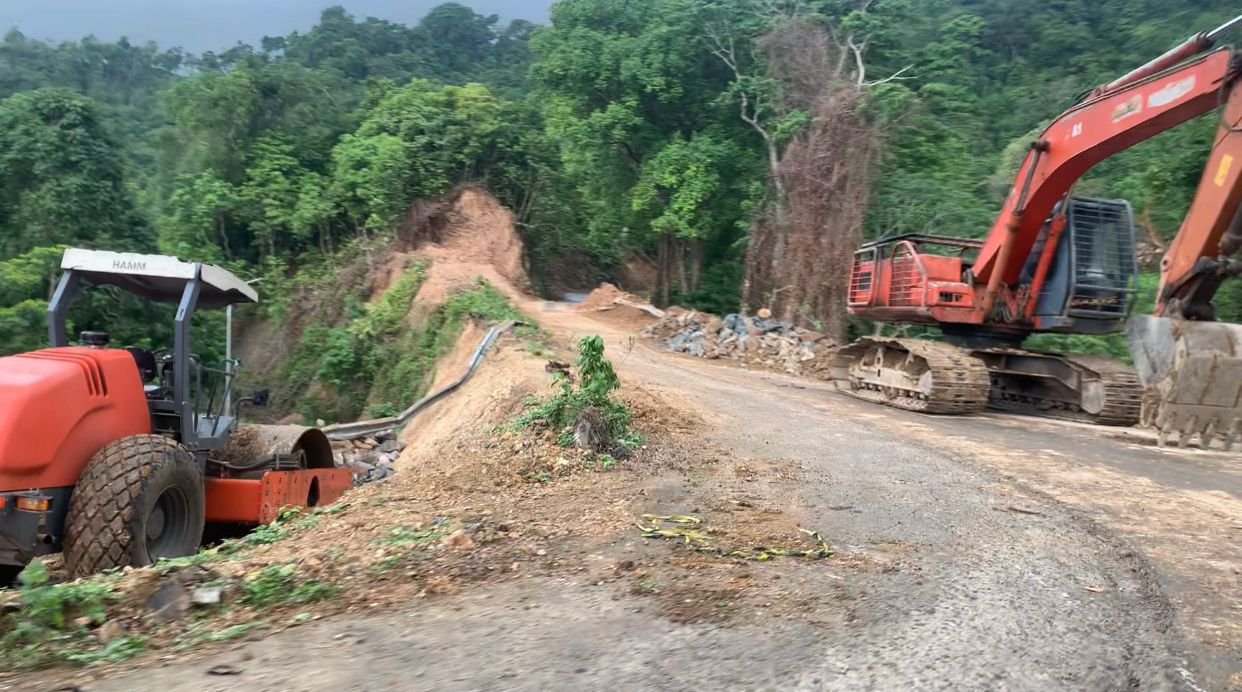 Sementara Kasubsi PID dan Multimedia Si Humas Polres Lotara Aipda Wiswakarma saat mendampingi Kapolsek Pemenang meninjau jalur Pusuk menyampaikan, material kerukan bukit menutupi setengah badan jalan.