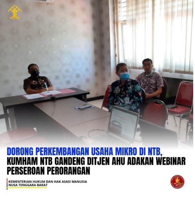 "Perseroan Perorangan sangat membantu, karena Perseroan Terbatas (PT) syaratnya minimal harus didirikan oleh 3 orang sedangkan Perseroan Perorangan bisa didirikan oleh satu orang saja yaitu pemilik modal itu sendiri," ungkap Yudi, Kepala Bidang Pelayanan Hukum Kementerian Hukum dan Hak Azasi Manusia (Kemenkumham) Wilayah NTB, saat membuka Webinar tentang Perseroan Perorangan (PP), Kamis, (16/9/2021).