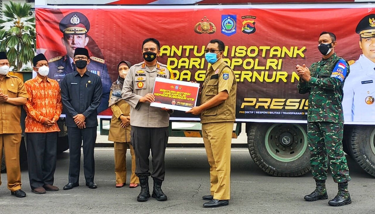 Penyerahan bantuan oksigen isotank liquid dari Kapolri untuk Pemprov NTB. (Istimewa)