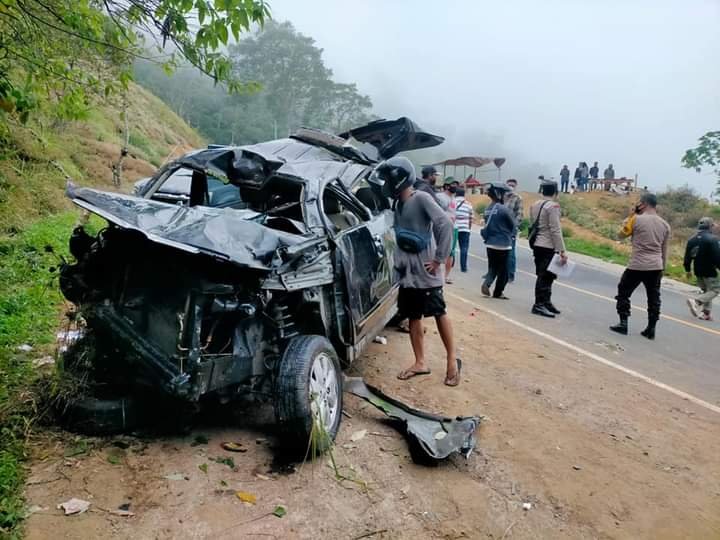 Mobil yang dikemudikan Drs Y terjun dari bahu jalan Pusuk Sembalun, Lombok Timur. Mobil itu terjatuh sekitar kedalaman 30 meter.