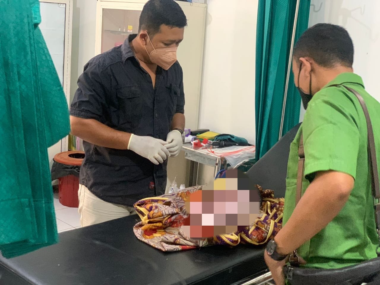 Mayat bayi yang ditemukan terbungkus plastik merah yang digantung di pinggir Jalan di KLU dibawa ke Puskesmas Pemenang. (Istimewa)