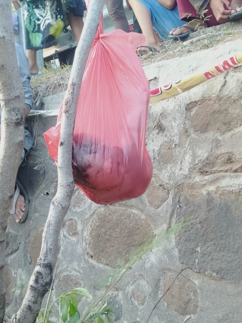 HarianNusa, Lombok Utara – Seorang pencari rumput menemukan mayat bayi yang dibungkus plastik merah tergantung pada kayu di pinggir jalan Bukit Batu Bolong, Dusun Mentigi, Desa Malaka, Kecamatan Pemenang, Kabupaten Lombok Utara, Selasa pagi, 5 Oktober 2021, pukul 06.00 Wita.