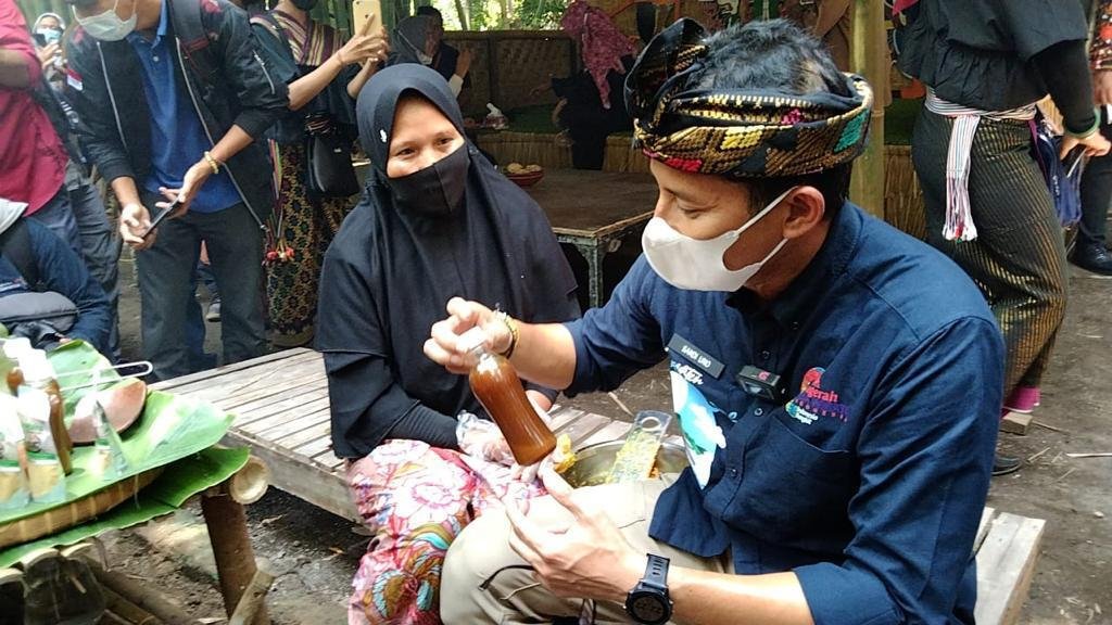 Menteri Pariwisata dan Ekonomi Kreatif Sandiaga Salahuddin Uno saat berkunjung ke Desa Wisata Bonjeruk Lombok Tengah, NTB. (Istimewa)