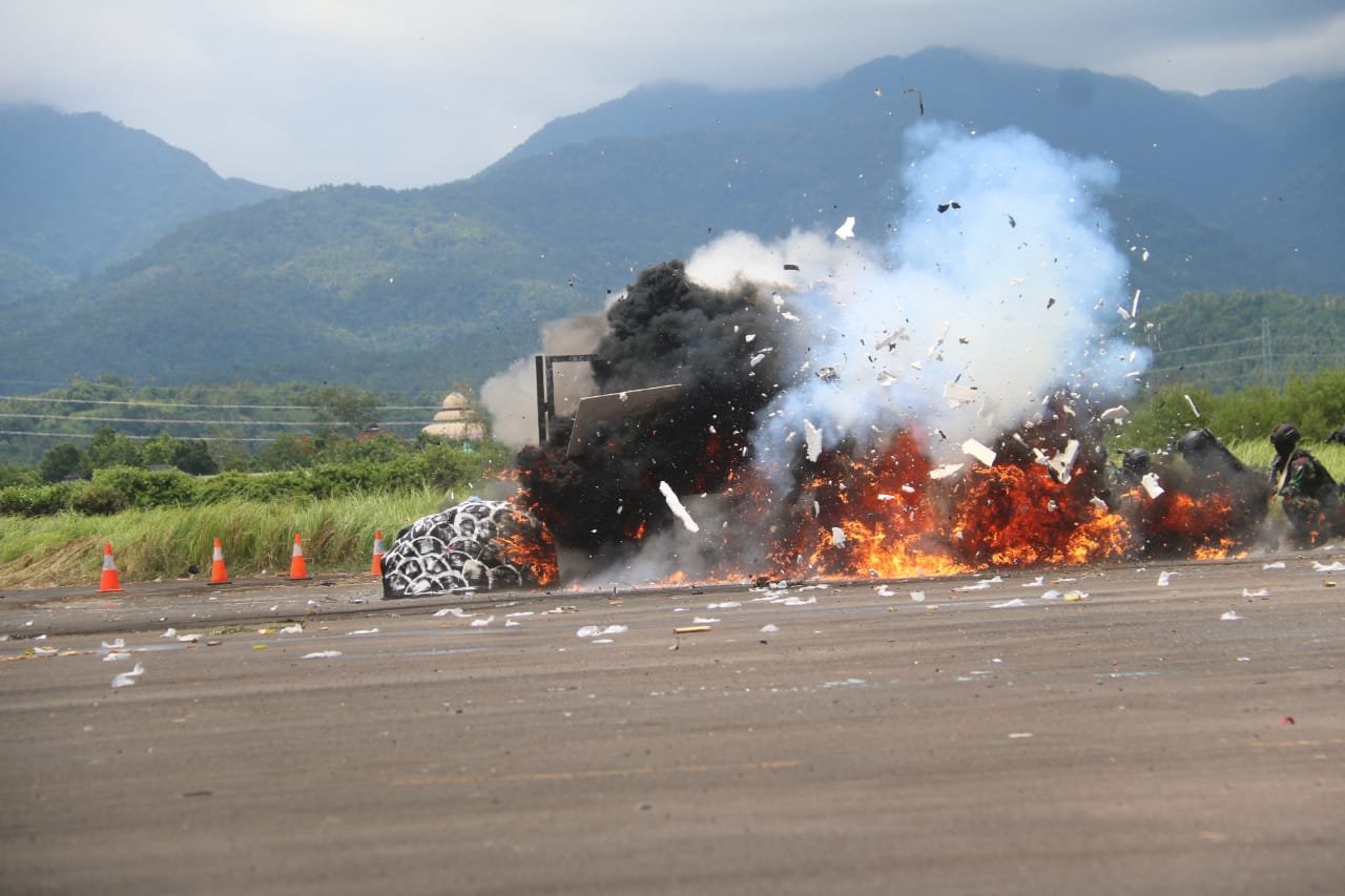 HarianNusa, Mataram – Tragedi ledakan bom terjadi usai tim gabungan TNI-Polri berhasil menyelamatkan sandera, Rabu (10/11/2021) siang, di eks Bandara Selaparang Kota Mataram Provinsi Nusa Tenggara Barat (NTB). Ledakan bom yang bertepatan dengan Hari Pahlawan Nasional itu, terjadi beberapa saat setelah Menteri Perhubungan, Dirjen Perhubungan Darat, dan Kakorpolairud Baharkam Polri, mendarat menggunakan helikopter milik Baharkam Polri di lokasi kejadian.