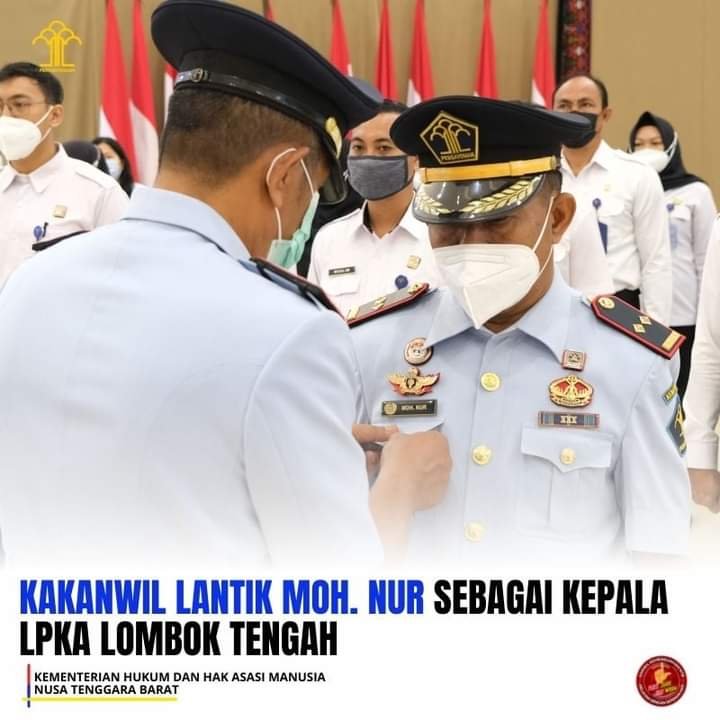 HarianNusa, Mataram – Kepala Kanwil Kemenkumham NTB, Haris Sukamto, melantik dan mengambil sumpah Kepala Lembaga Pembinaan Khusus Anak Kelas II Lombok Tengah (LPKA Lombok Tengah), Moh. Nur yang menggantikan Kepala LPKA sebelumnya, Ahmad Zaenal Fikri di Aula Kantor Wilayah Kemenkumham NTB, Rabu (01/12/2021).