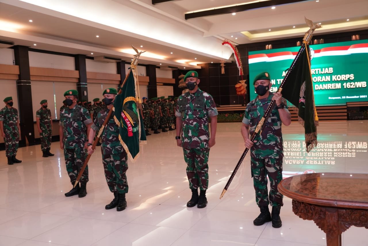 HarianNusa, Denpasar – Kolonel Czi Lalu Rudy Irham Srigede, ST. M.Si., resmi menjabat Komandan Korem 162/Wira Bhakti setelah menerima penyerahan jabatan dari Brigjen TNI Ahmad Rizal Ramdhani, S.Sos. SH. M.Han., yang berlangsung di aula Udayana lantai 3 Makodam IX/Udayana, jalan Udayana No.1 Denpasar, Kamis (23/12/2021).