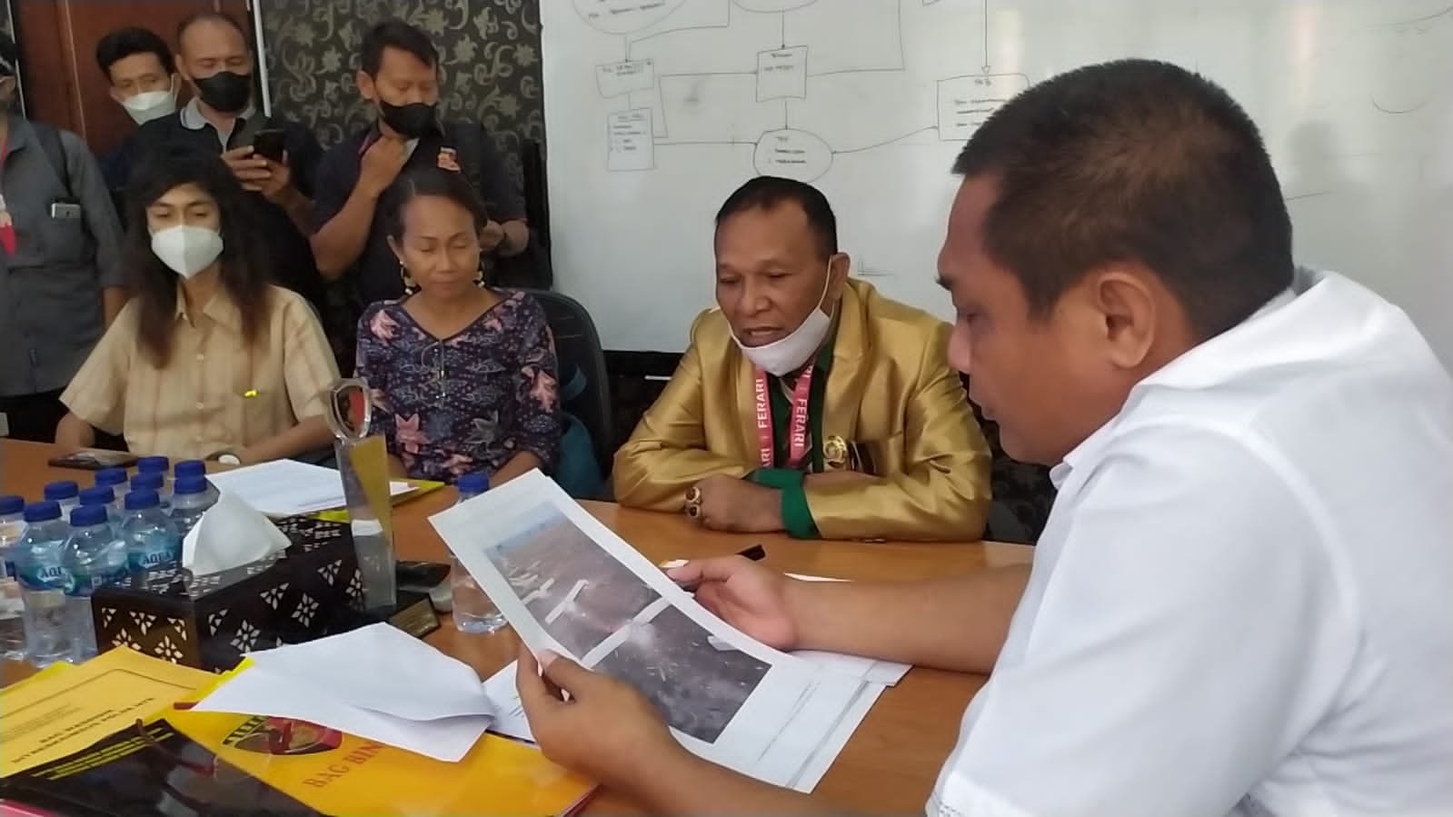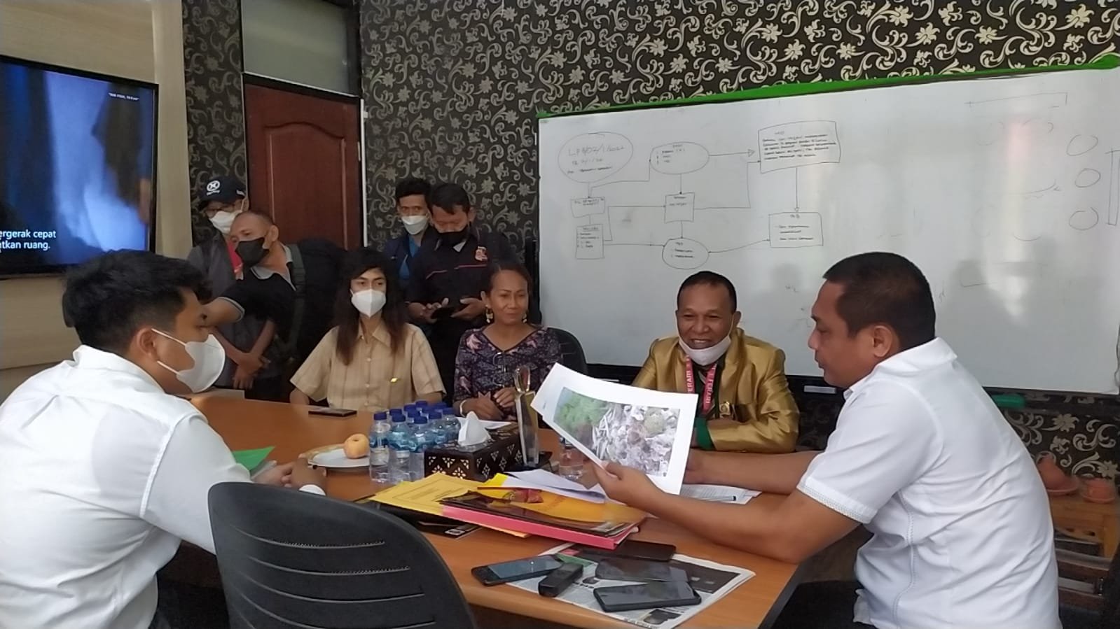 Direktur Reserse Kriminal Khusus (Reskrimsus) Polda NTB Kombes Pol. I.G.P.G. Ekawana P., S.I.K., memerima audiens Sri Marjuni Gaeta alias Putri, atas kasus pengerusakan aset miliknya di atas lahan SHM 1180 Samota Kelurahan Brang Biji, Sumbawa, Senin, (10/01/2022). (HarianNusa)