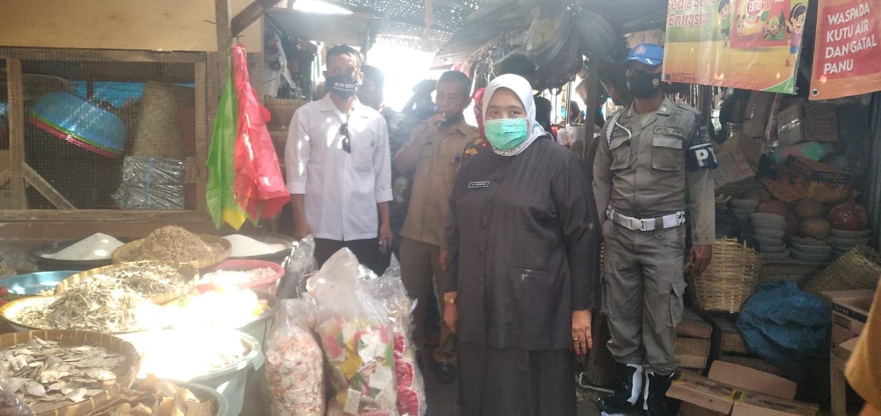 Wakil Bupati Lombok Barat Hj. Sumiatun saat mengunjungi pasar Gunungsari. (Istimewa)
