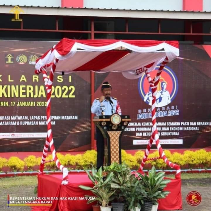 HarianNusa, Mataram – Deklarasi Kinerja dan Penandatanganan Janji Kinerja untuk Satuan Kerja di Pulau Lombok dimulai oleh Lapas Mataram, Kanim Mataram, LPP Mataram, Bapas Mataram dan Rupbasan Mataram di Kanwil Kemenkumham NTB, Senin (17/01/2022).