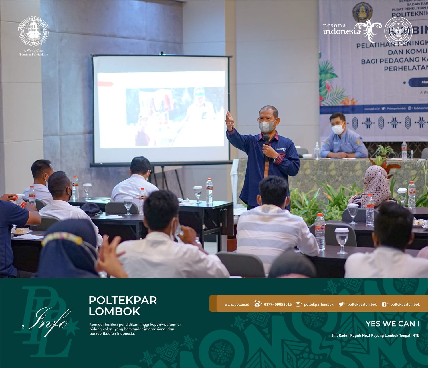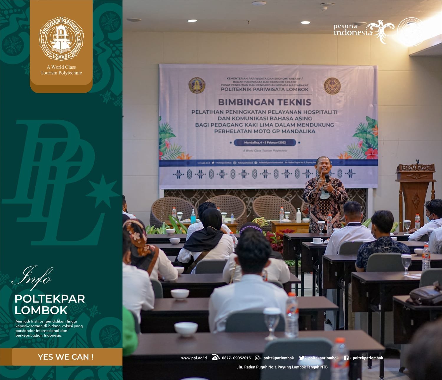Bentuk dukungan Poltekpar Lombok yakni menyelenggarakan Bimbingan teknis (Bimtek) Pelayanan Hospitaliti dan Komunikasi Bahasa Asing bagi Pedagang Kaki Lima yang ada di Kawasan KEK Mandalika.