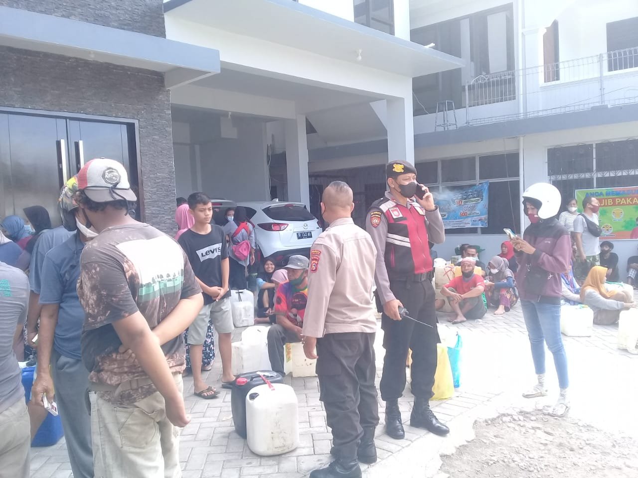 Petugas kepolisian saat memonitor masyarakat yang antri membeli minyak goreng curah. (Istimewa)
