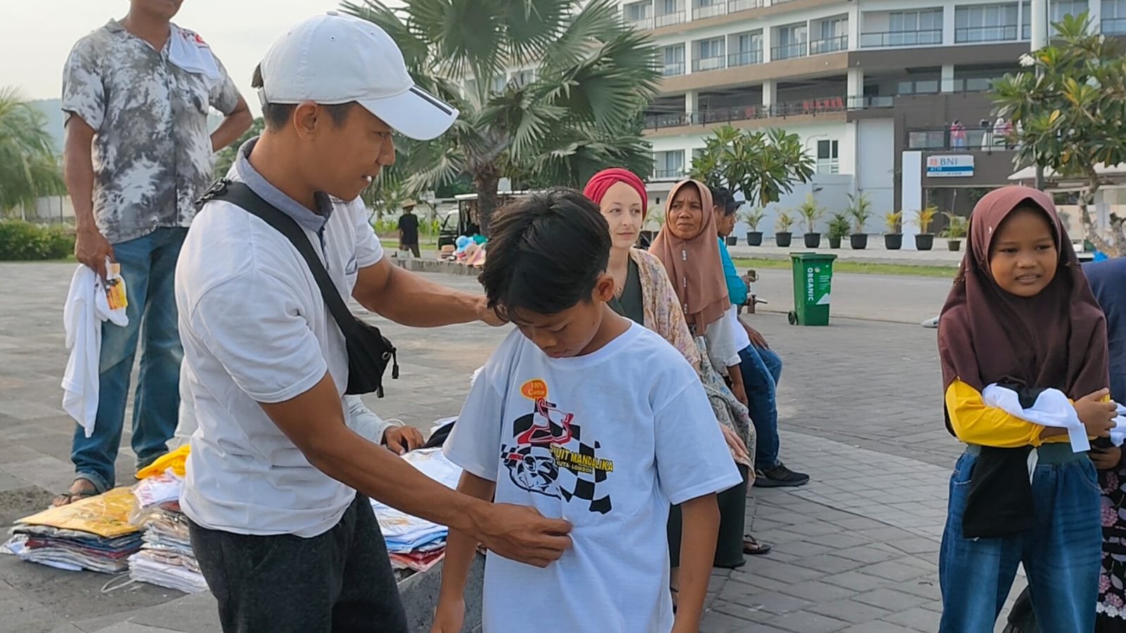 Anak yatim itu diajaknya berkeliling di kawasan wisata Kuta Mandalika oleh Indra Sasak.