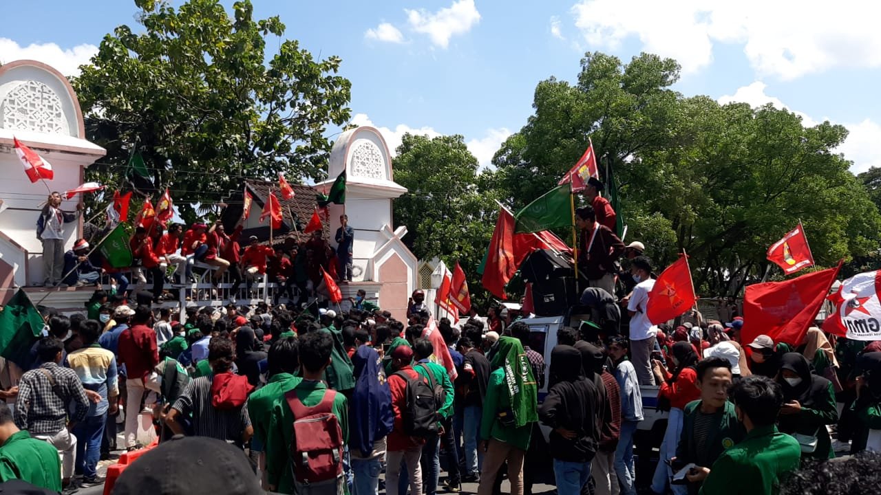 1. Ratusan mahasiswa saat unjuk rasa di depan Gedung DPRD NTB. (Istimewa)