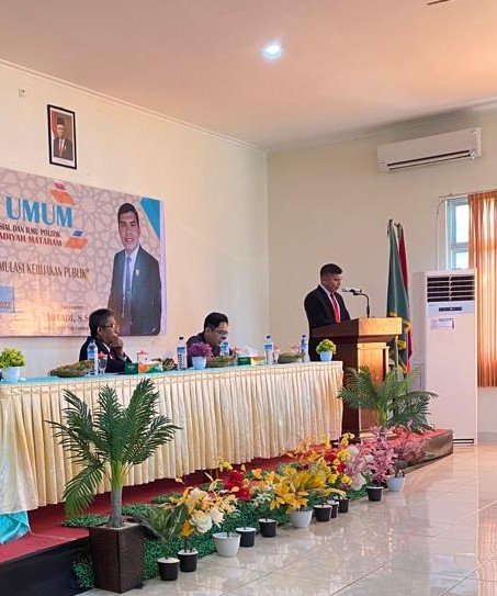 Dekan FISIP UMMAT Dr. H. Muhammad Ali M.Si yang memberikan prolognya menyambut baik adanya kuliah umum berkaitan dengan peran dan fungsi DPRD dalam formulasi kebijakan publik, berbagi pengalaman empirik. Dirinya juga mendengar keaktifan pimpinan DPRD KLU dalam rangka menjalankan tupoksinya. Menurutnya, government yang responsible adalah legislatif yang dapat menyerap aspirasi publik dengan ketentuan peraturan yang berlaku.