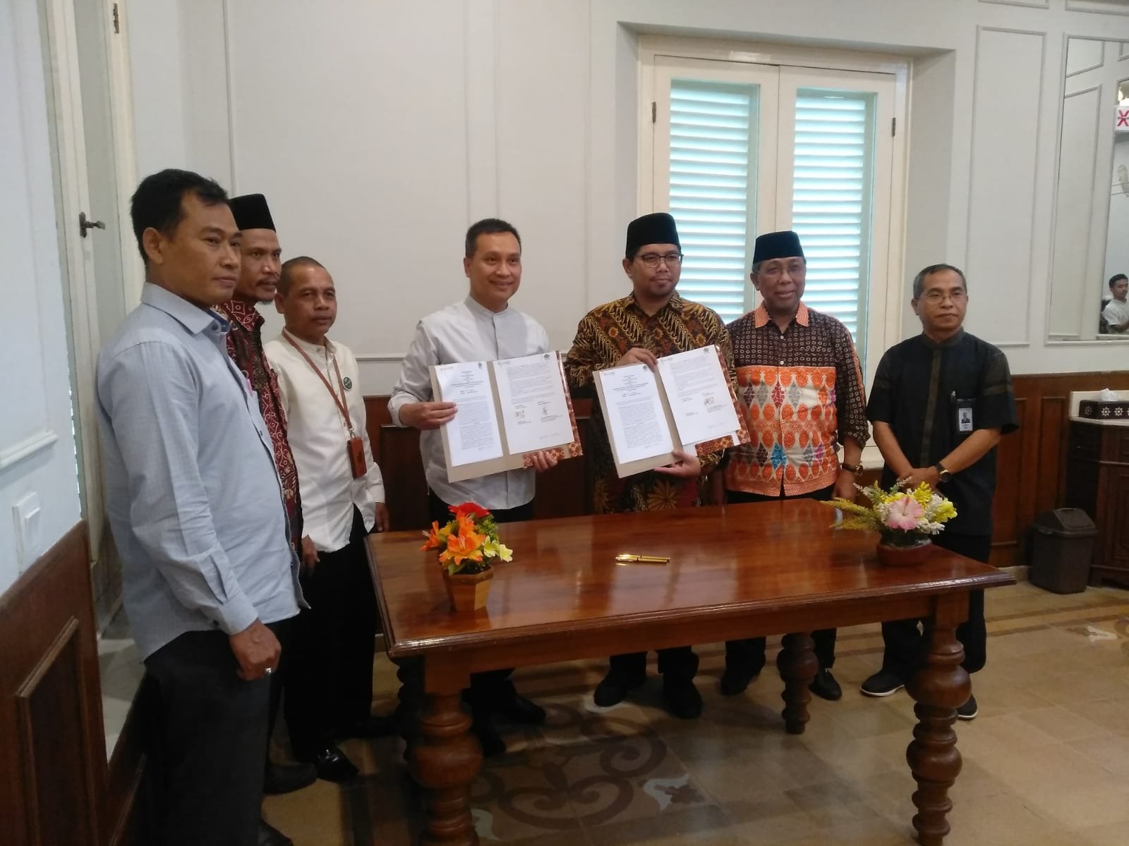 Foto : TGH Hazmi Hamzar (dua dari kanan) saat penandatanganan MoU antara Yayasan Maraqitta’limat dengan PT. Bank NTB Syariah Jumat (21/10) kemarin. (Istimewa)