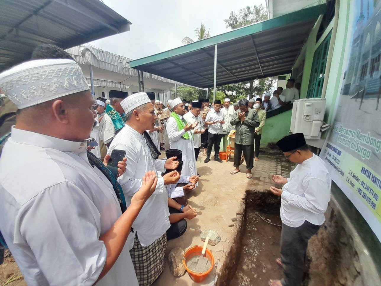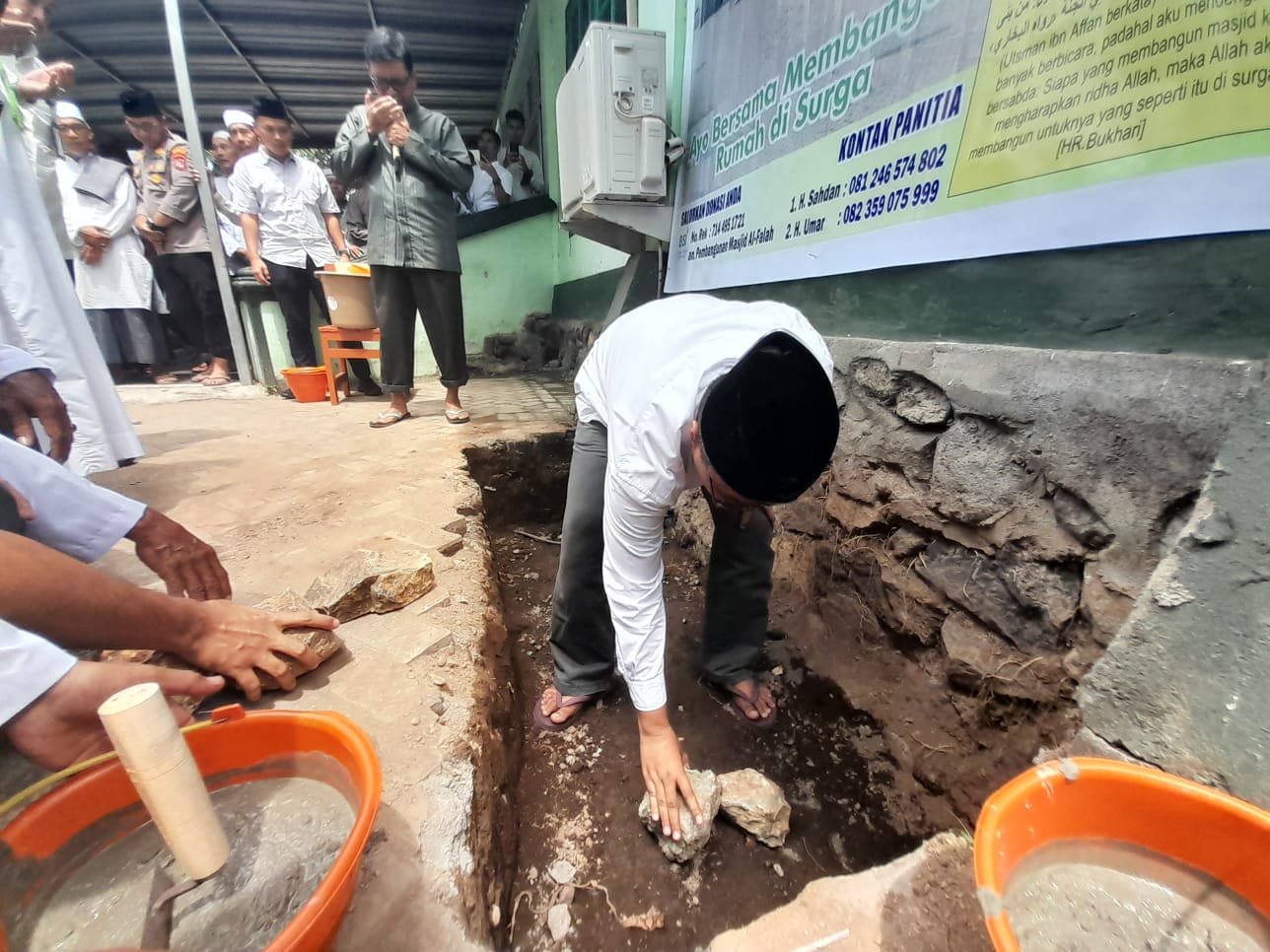 Gubernur NTB, Dr. H. Zulkieflimansyah, SE., M. Sc melakukan peletakan batu pertama pembangunan ulang masjid Al Falah Taman Sari Ampenan, Kota Mataram. (Istimewa)